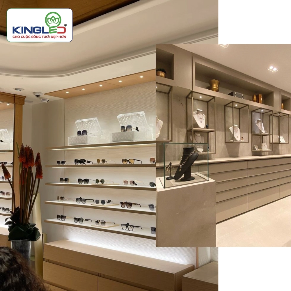 Cửa hàng thời trang, mỹ phẩm hoặc showroom trang sức sử dụng đèn Apple 3W để tạo spotlight cho sản phẩm: túi xách, giày dép, lọ mỹ phẩm. CRI >98 tái hiện màu sắc sống động, tăng sức hút với khách hàng và thúc đẩy doanh số bán hàng.
