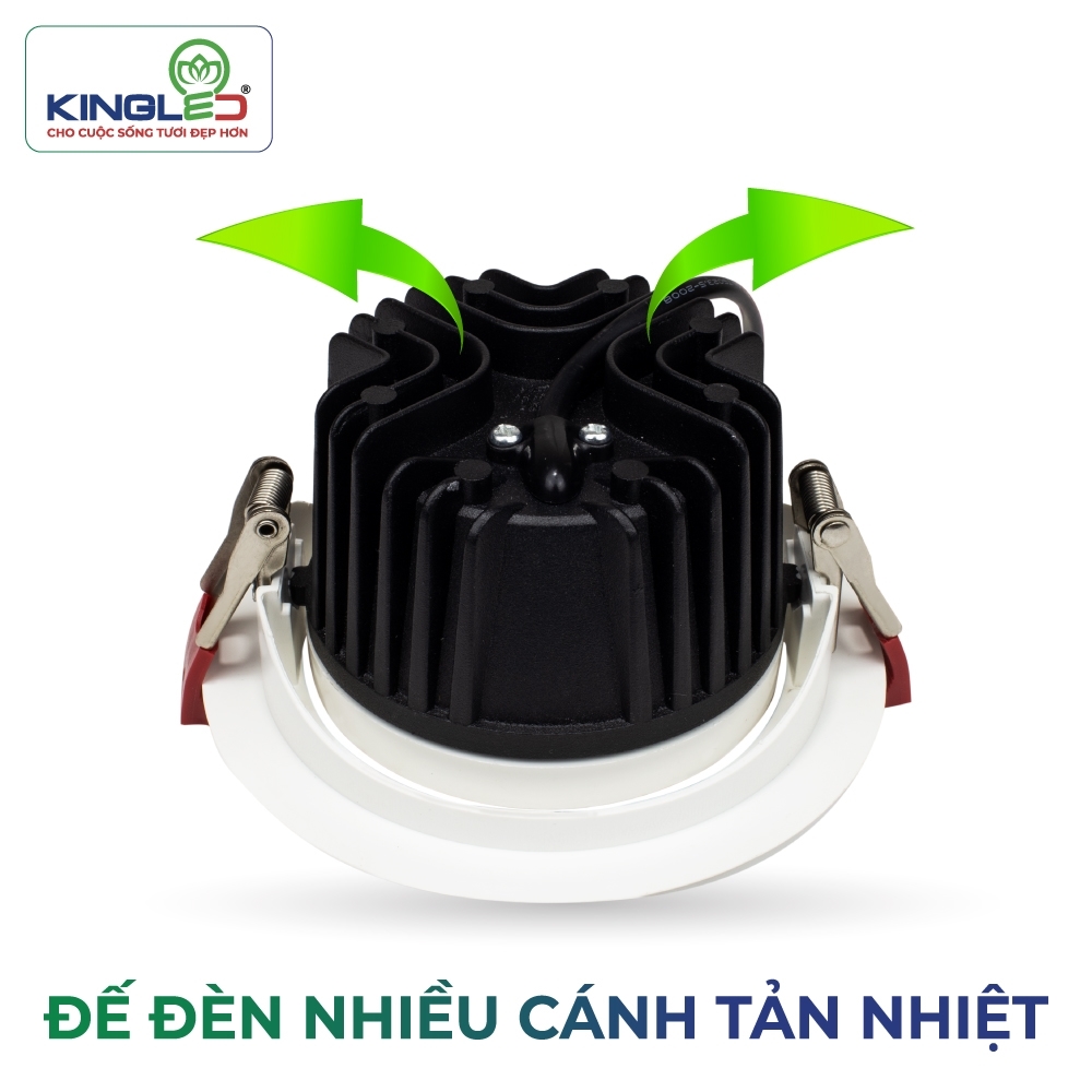 Đế đèn bằng nhôm nguyên khối, thiết kế nhiều cánh tản nhiệt giúp thoát nhiệt nhanh, duy trì hiệu suất chip LED và kéo dài tuổi thọ sản phẩm.