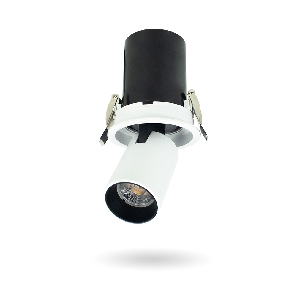 Khác biệt hoàn toàn so với downlight cố định thông thường, Obsidian 5W cho phép kéo module ra tối đa 167 mm và xoay tự do theo mọi hướng. Người dùng có thể dễ dàng điều chỉnh để chiếu thẳng xuống kệ trưng bày, chiếu xiên vào góc tường trang trí, chiếu ngược lên trần tạo ánh sáng gián tiếp hoặc tập trung vào một điểm duy nhất mà không cần bất kỳ dụng cụ nào, mang lại sự tiện lợi tối đa cho cả gia chủ và thợ thi công.
