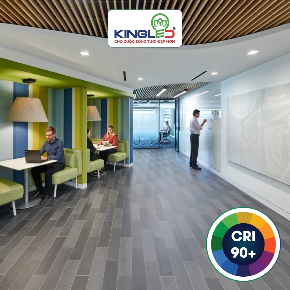 Chỉ số hoàn màu CRI >90: Tái hiện màu sắc tự nhiên, gần với ánh sáng tự nhiên, đạt tiêu chuẩn chiếu sáng Việt Nam TCVN 7114:2008, lý tưởng cho các không gian sinh hoạt gia đình hoặc trưng bày sản phẩm.