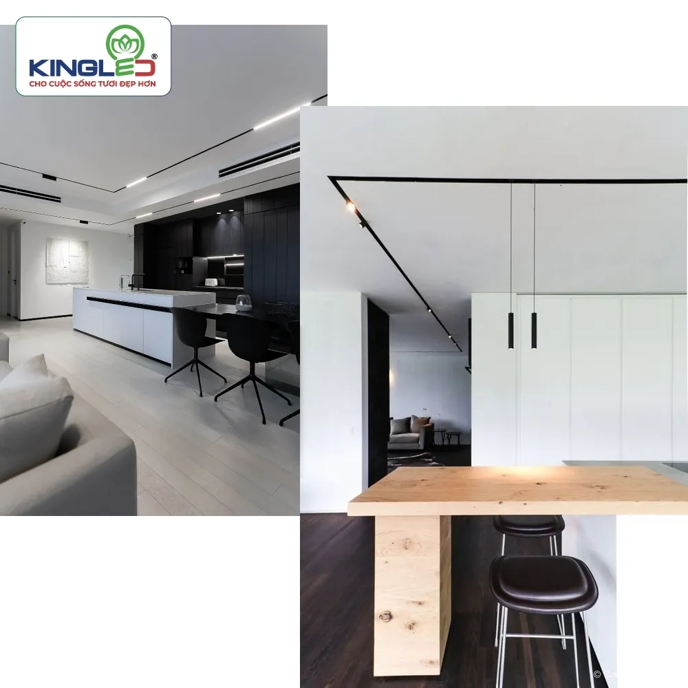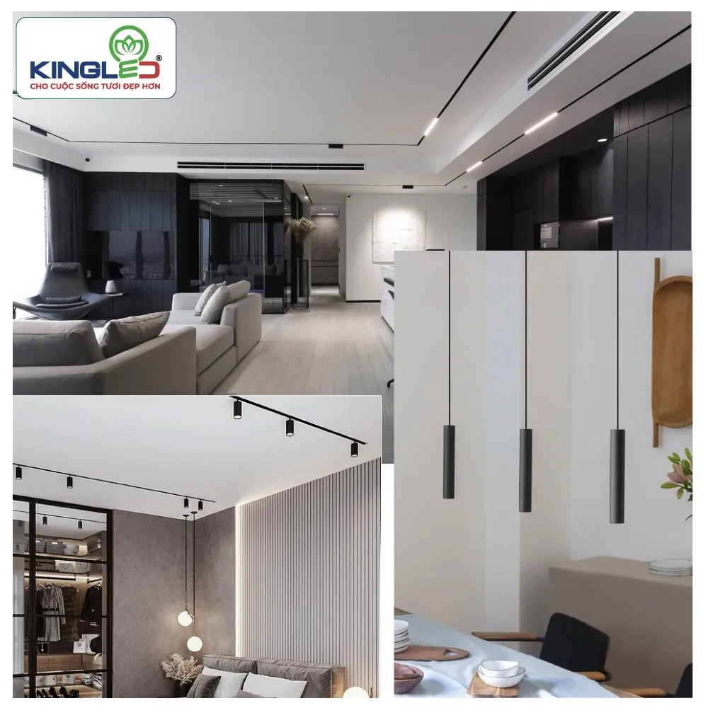 Sản phẩm có thiết kế dạng thanh dài (Linear) với các mắt LED xếp hàng dọc tinh tế. Khi lắp phẳng vào thanh ray âm trần, đèn trở thành một phần của kiến trúc, tạo nên những đường kẻ ánh sáng gãy gọn, hiện đại. Thiết kế này giúp trần nhà giữ được vẻ đẹp thoáng đãng, không bị vướng víu bởi các thiết bị nổi.