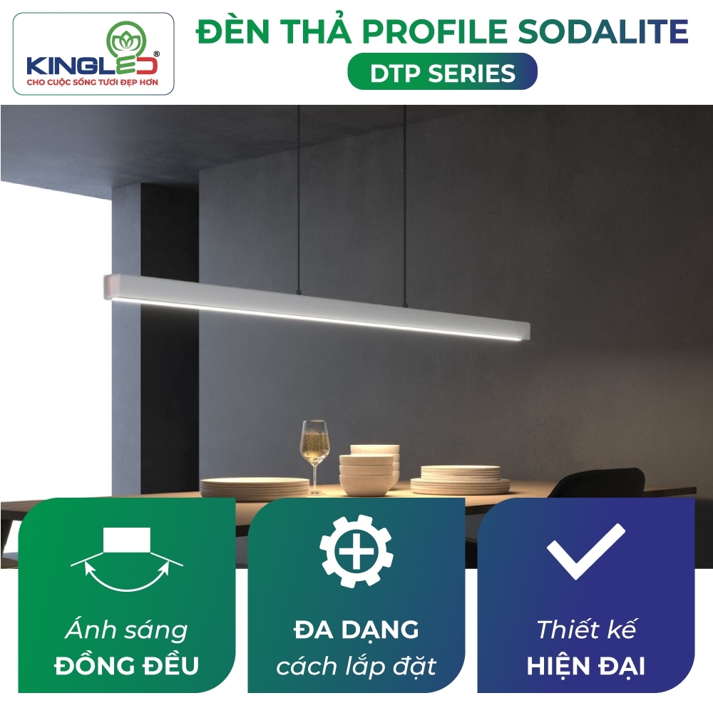 DD Lighting, Công ty Cổ phần Thiết bị Điện Đèn LED, tự hào là nhà phân phối chính hãng Đèn thả Profile Sodalite 36W DTP-36SS-118-V/TT/T-T thuộc dòng cao cấp Sodalite DTP-SS Series của Kingled. Đây là phiên bản đế trắng sần tinh tế nhất, được thiết kế dành riêng cho những không gian ưu tiên sự sang trọng tối giản, hiện đại và sạch sẽ: văn phòng sáng tạo, quán cafe Scandinavian, nhà hàng Á-Âu cao cấp, khách sạn boutique, showroom mỹ phẩm – nội thất, phòng khách biệt thự trắng chủ đạo, quầy lễ tân tòa nhà văn phòng hiện đại và các công trình kiến trúc tinh tế khác. Với chip LED Samsung 2835 Ra90+, chỉ số hoàn màu CRI > 90, góc chiếu rộng 120°, mặt mica mờ chống chói UGR < 19, thân nhôm sơn tĩnh điện trắng sần cao cấp, quang thông 3.960 lm và khả năng lắp thả hoặc gắn sát trần linh hoạt, Sodalite 36W đế trắng mang lại ánh sáng trải đều hoàn hảo, không bóng đổ, không chói mắt, tạo cảm giác không gian rộng rãi và sang trọng hơn hẳn. Là đối tác chiến lược lâu năm của Kingled, Schneider, Legrand, Panasonic và Rạng Đông, DD Lighting cam kết cung cấp hàng chính hãng 100%, kho sẵn số lượng lớn nhất miền Bắc, giá tốt nhất thị trường và dịch vụ hậu mãi 24/7 tận tâm.