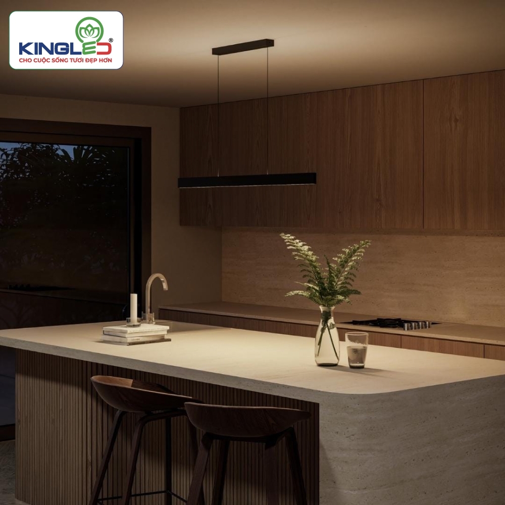 - Quang thông tối đa 3.960 lm kết hợp góc 120° tạo vùng sáng hình chữ nhật dài 4–6 m, đủ để phủ kín bàn làm việc dài, quầy lễ tân hoặc bàn ăn gia đình mà không cần đèn bổ sung.