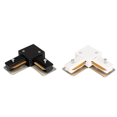 Kiểu kết nối góc vuông 90 độ: Khớp nối này được thiết kế để ghép hai thanh ray lại với nhau tạo thành một góc vuông hoàn hảo. Đây là giải pháp kỹ thuật bắt buộc khi muốn lắp đặt hệ thống đèn chạy dọc theo các góc tường hoặc tạo khung chiếu sáng hình hộp cho showroom.